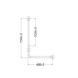 90° Left Grab Bar 600mm x 750mm