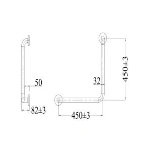 90° Ambulant Grab Rail 450mm x 450mm