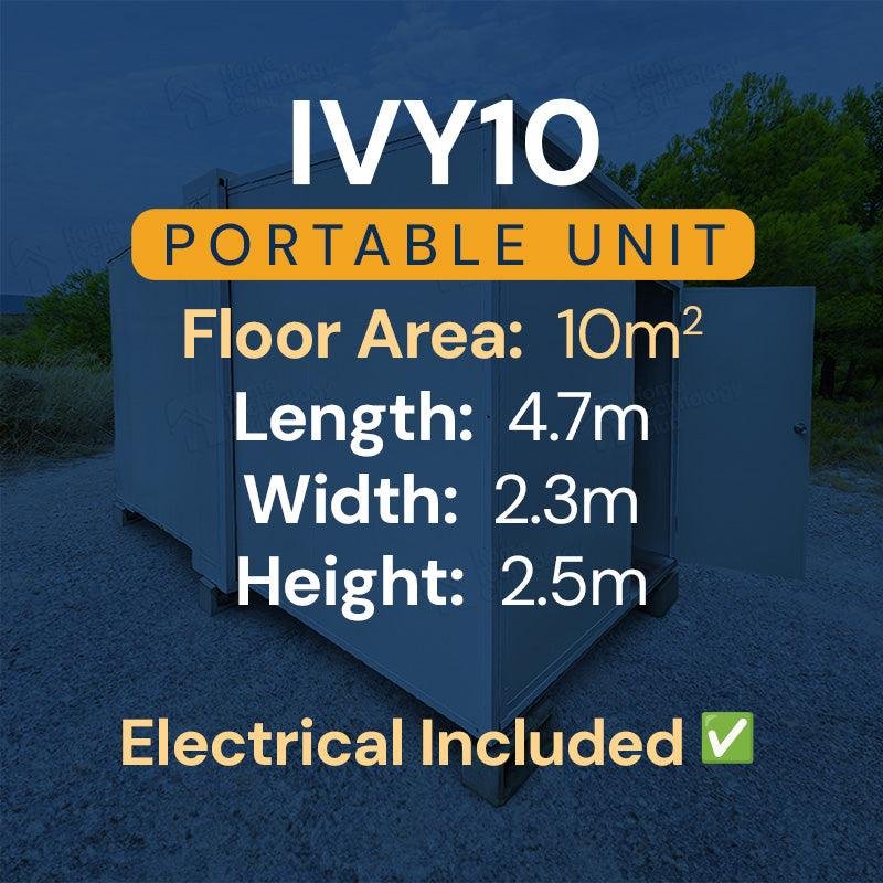 The IVY 10ft expandable container unit can be collapsed and packed into a compact flat form for easy relocation.