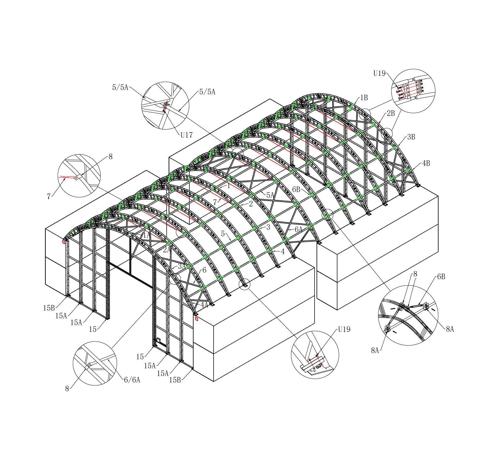 - Arch space 2m, Arch 60*1.8mm, Purlin 60*1.5mm