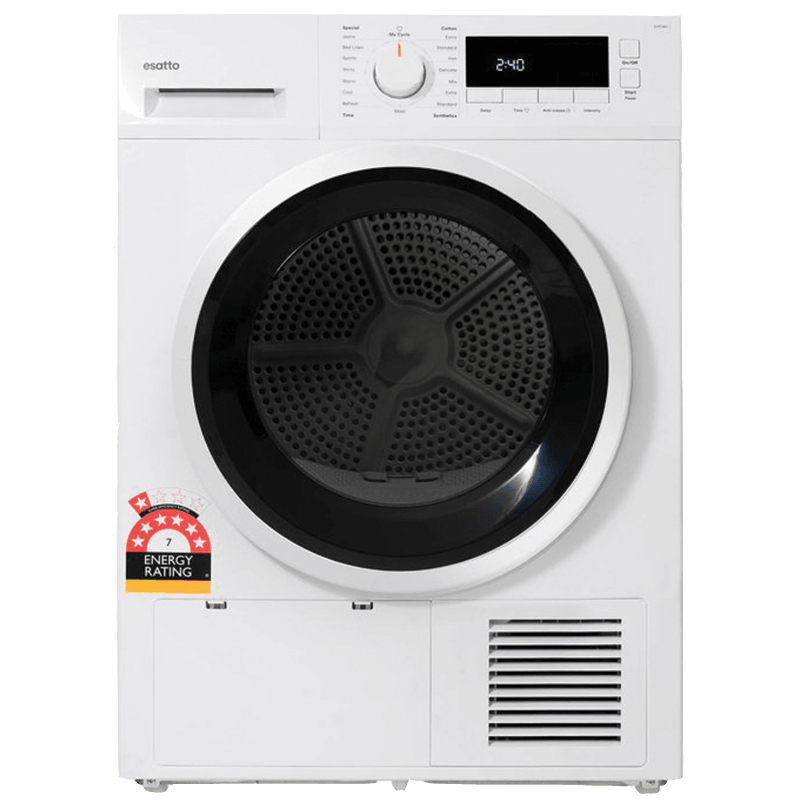 The heat pump drying technology offers a more gentle drying process for your clothes, resulting in significant reductions in running costs. Its exceptional efficiency makes it a 7-star worthy addition to your home! (Esatto 8kg Heat Pump Dryer)