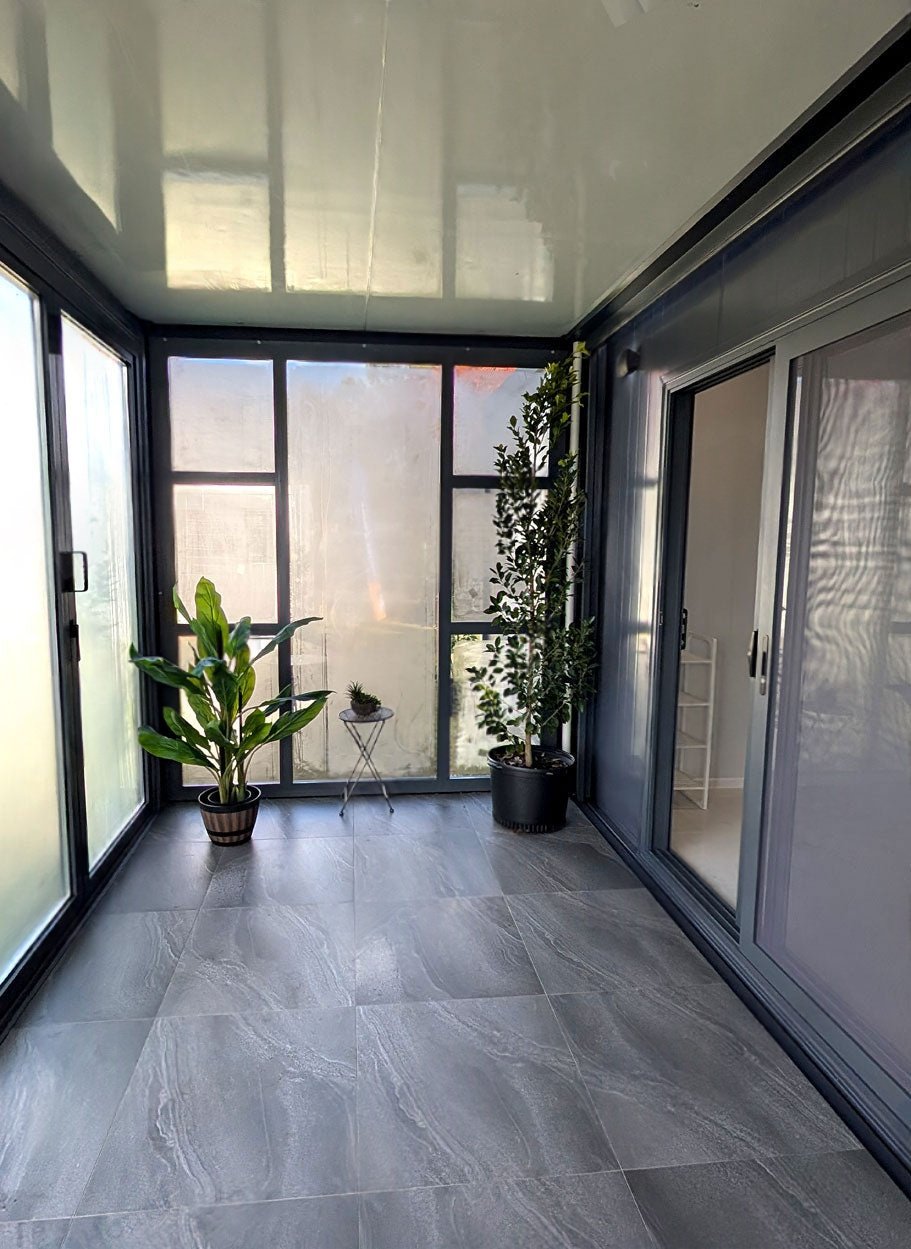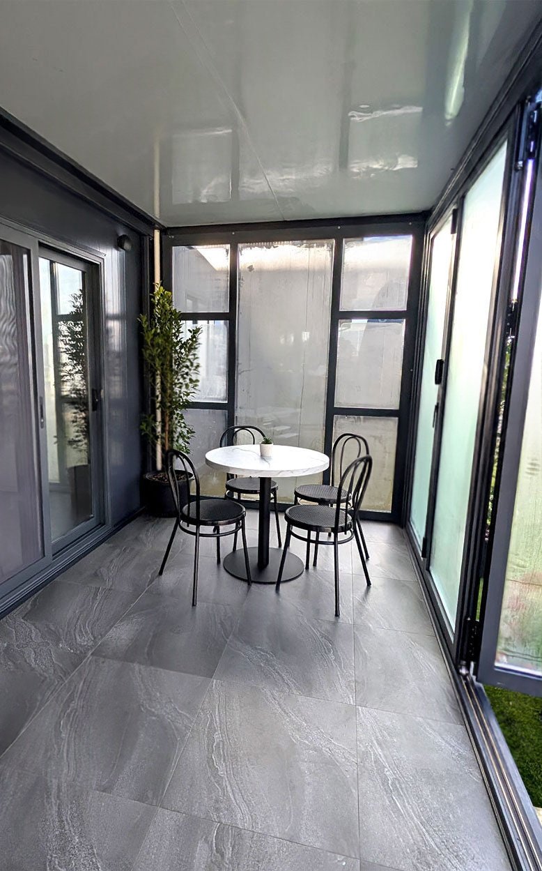 Exclusively showcased at the Hawkesbury Showground Tiny Home Expo, our JULIET Large Sunroom is the perfect companion to the JULIET units. Featuring fully-opening trifold doors that flood the space with natural light, it’s the ideal spot to enjoy your morning coffee in luxury.