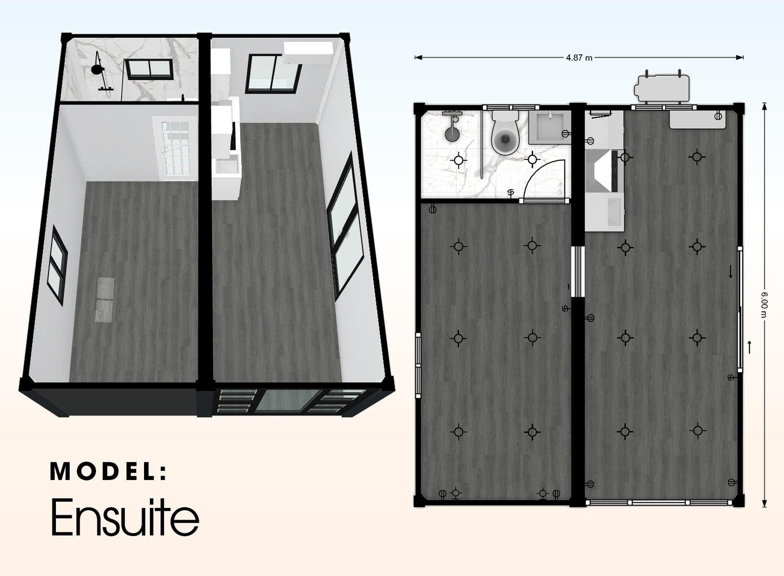 - Exterior: 6.00m(L) x 4.9m(W) x 2.79m(H)