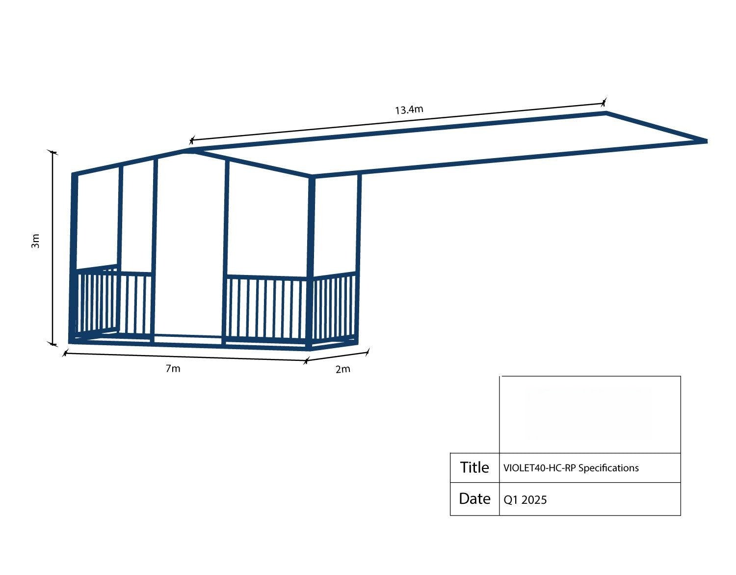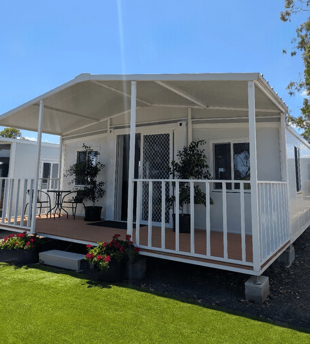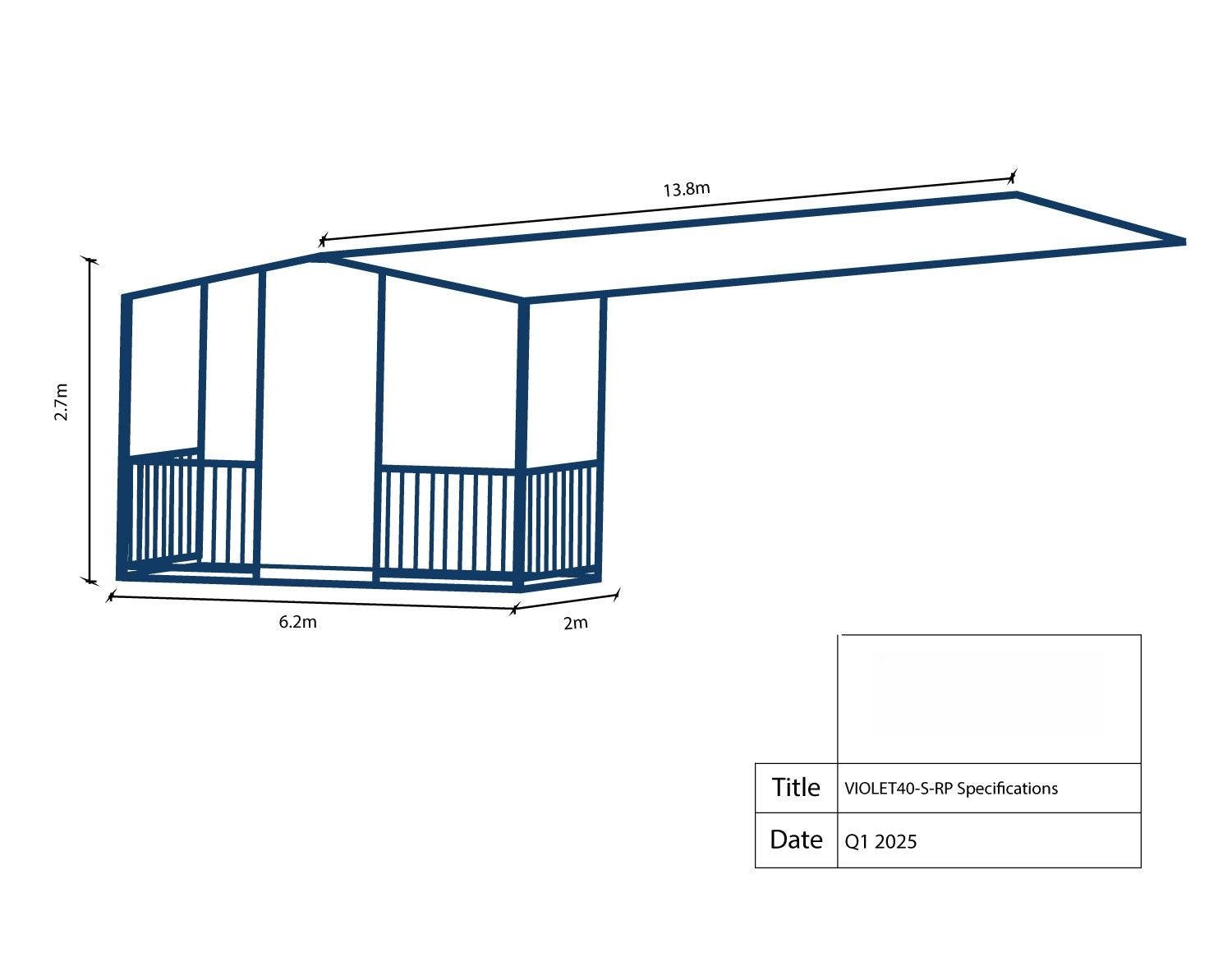The VIOLET40 Full Length Roof with Patio Extension is the perfect addition to your VIOLET granny flat, tiny home, relocatable dwelling, beach cabin & more! Turn your VIOLET container home into an oasis with this simple add-on! Available for both our VIOLET standard and raised ceiling units.