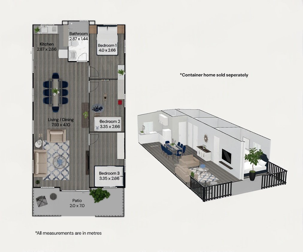 Please note that this listing is inclusive only of a Roof & Patio Extension and that the listed price does not include gutters, a container home or any furniture, home options, customisations, additions or upgrades. We do stock these specifically for our container homes however they are added on top of the extension cost. Once we have received the balance payment we can facilitate/organise freight to your delivery location.