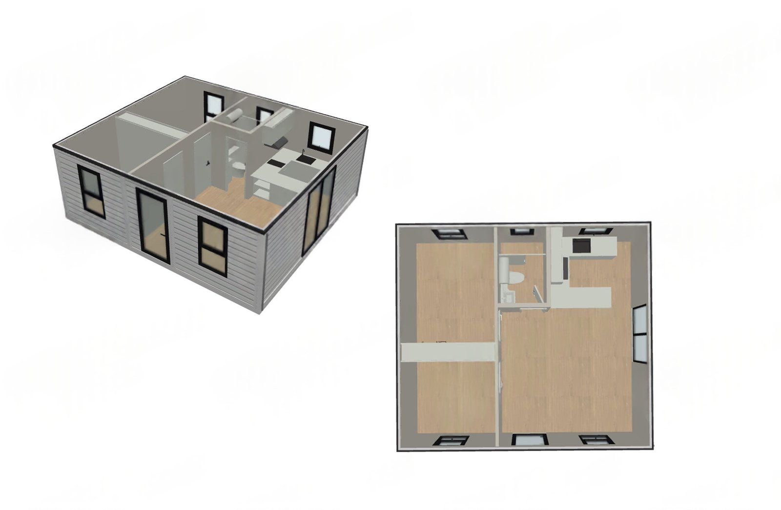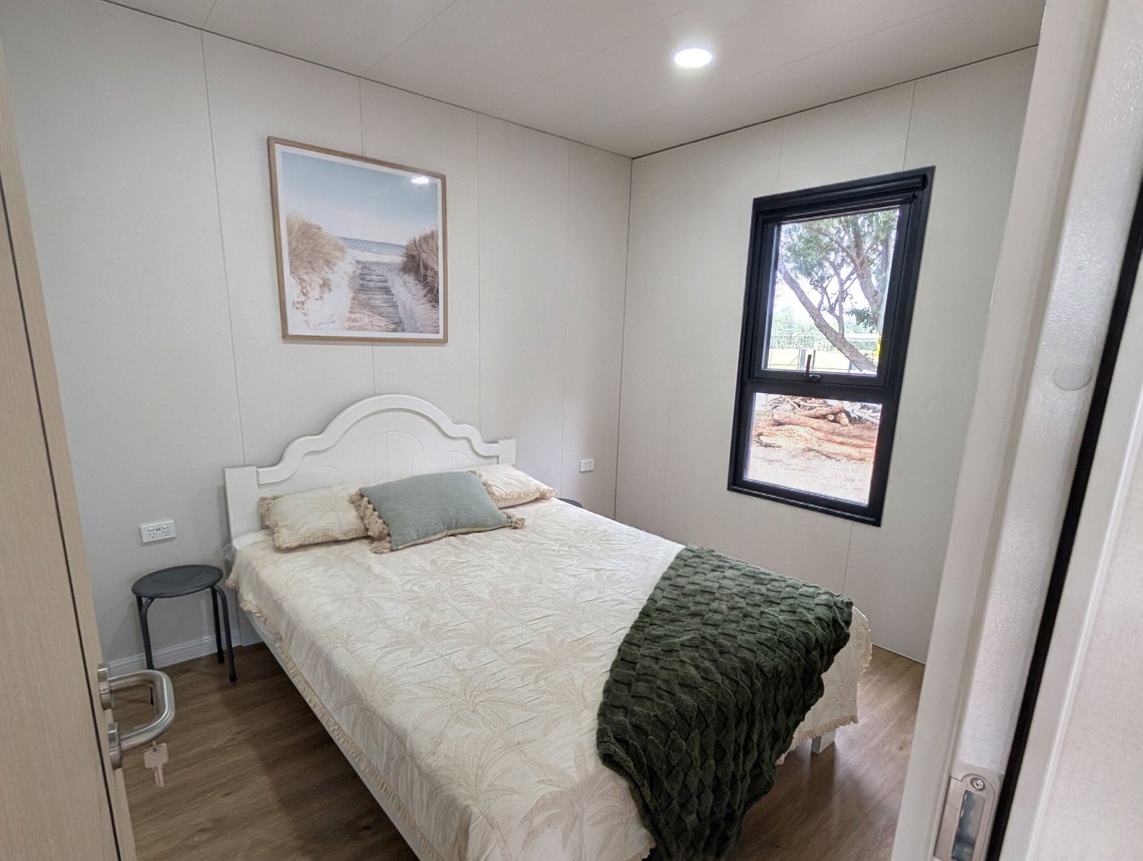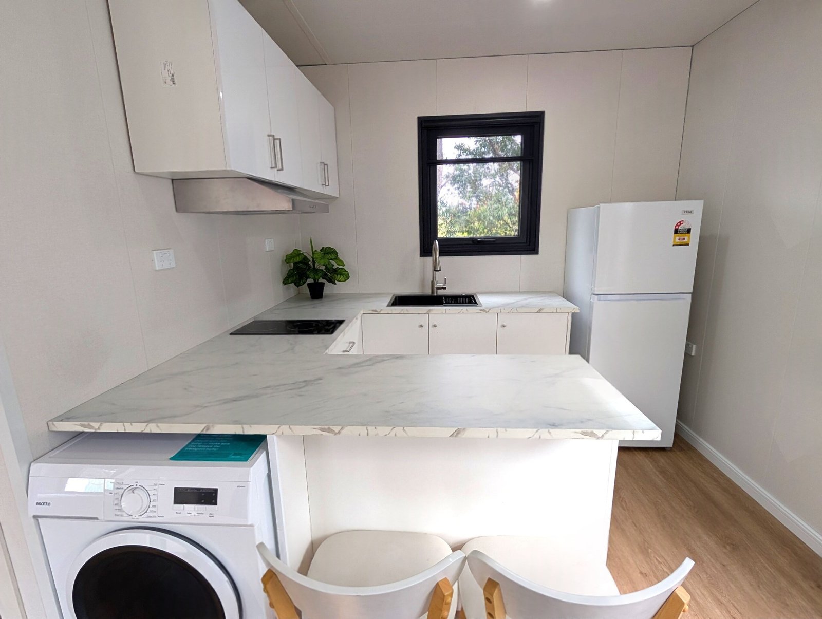 The STELLA container unit is the newest addition to our container home range. Measuring 5.9m x 7m it comes equipped with a kitchen, living/dining area, 2 bedrooms with storage and a bathroom.